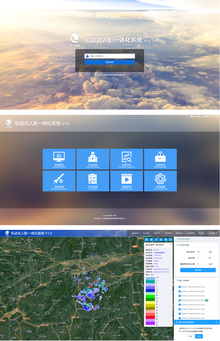 系統基于車輛平臺和氣象觀探測進行實時天氣監測、作業條件告警、作業指導方案生成以及作業效果評估,為用戶提供了完整的移動作業指揮流程管理服務,實現了快速機動、準確觀測、高效決策、實施有力、效果突出的人工影響天氣作業目標。