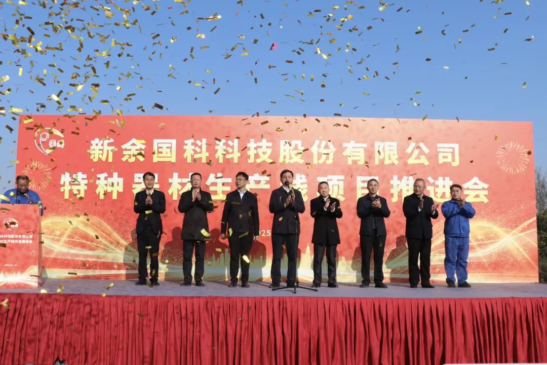 1月18日上午,新余國科特種器材生產線建設項目推進會在新余國科公司召開,市委副書記徐紹榮出席并下達開工令。省軍工控股集團有限公司黨委委員、副總經理吳安輝,市應急局局長夏侯云,市自然資源局副局長黃昶,市工信局副局長黃愛忠,區委書記周俊華,區委副書記、主任潘麗云,新余國科公司黨委書記、董事長袁有根出席會議。