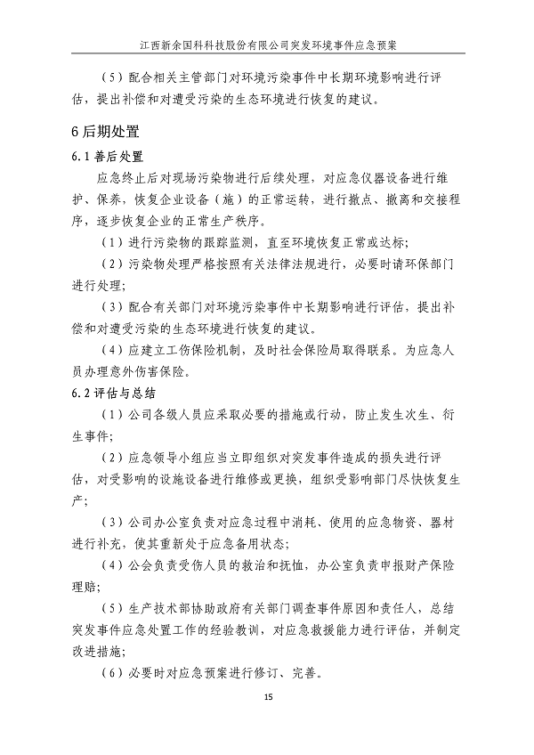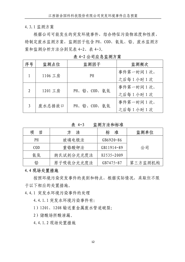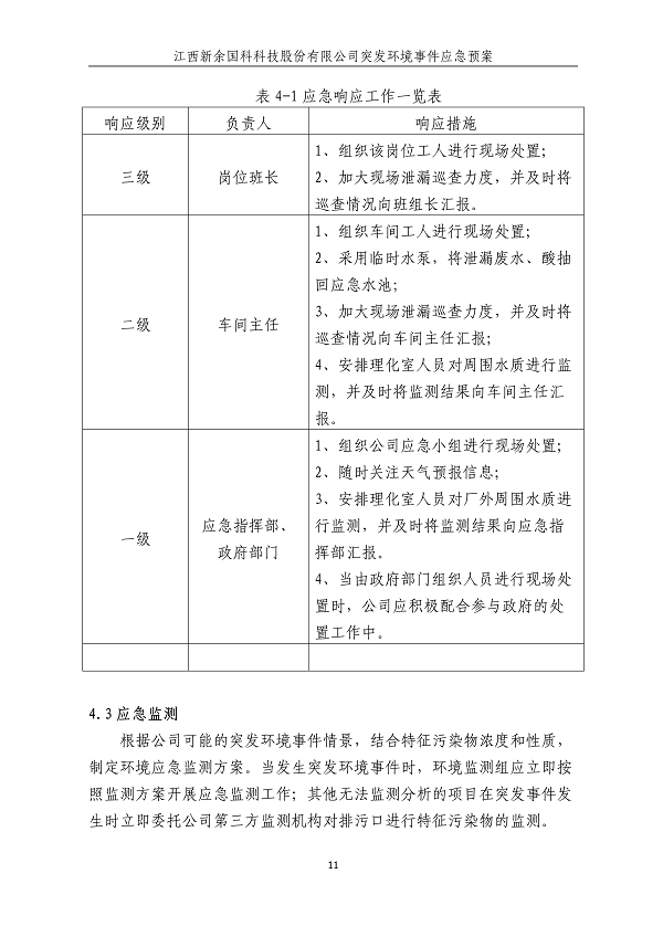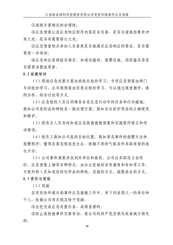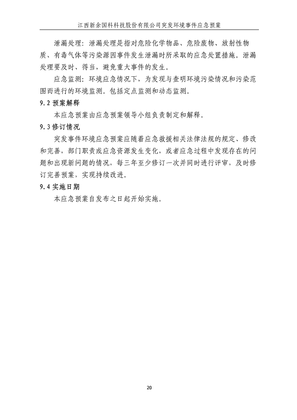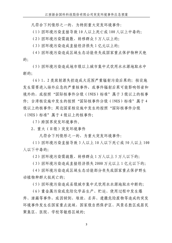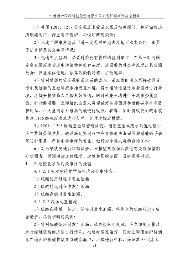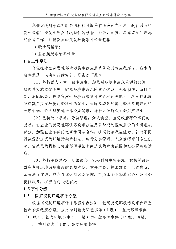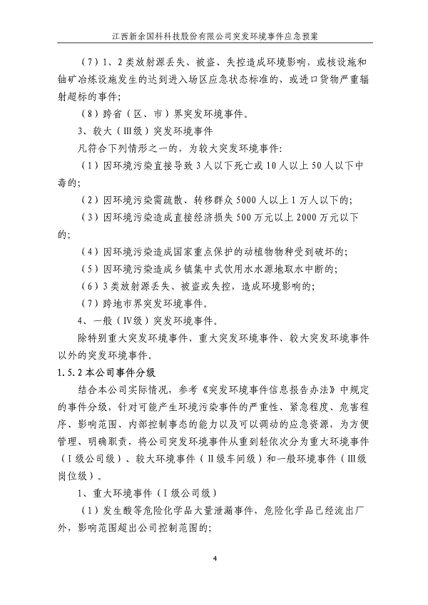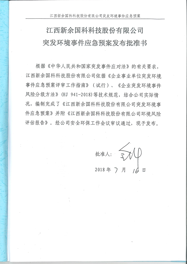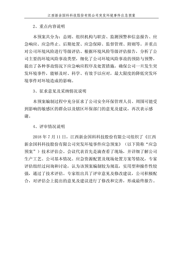 江西新余國科科技股份有限公司突發環境事件應急預案