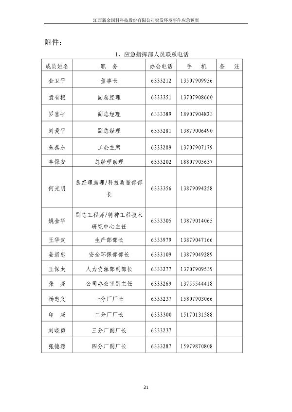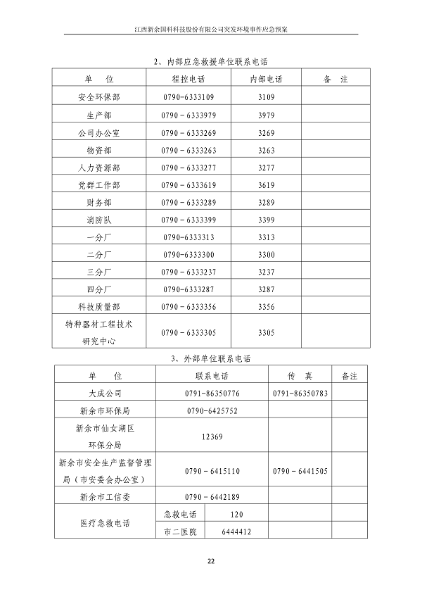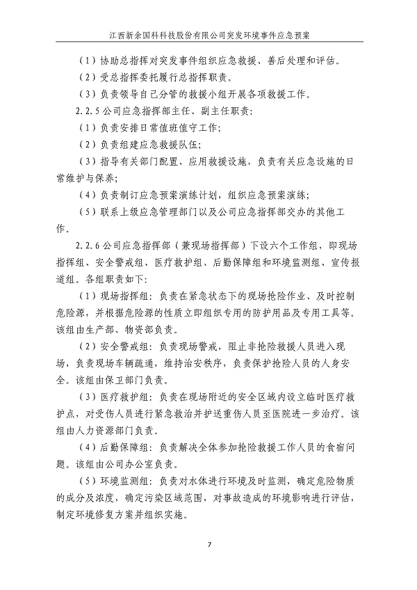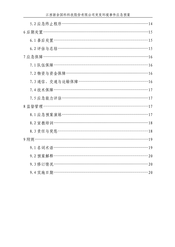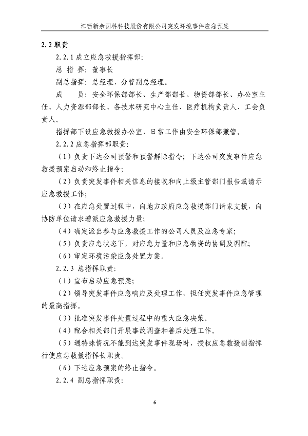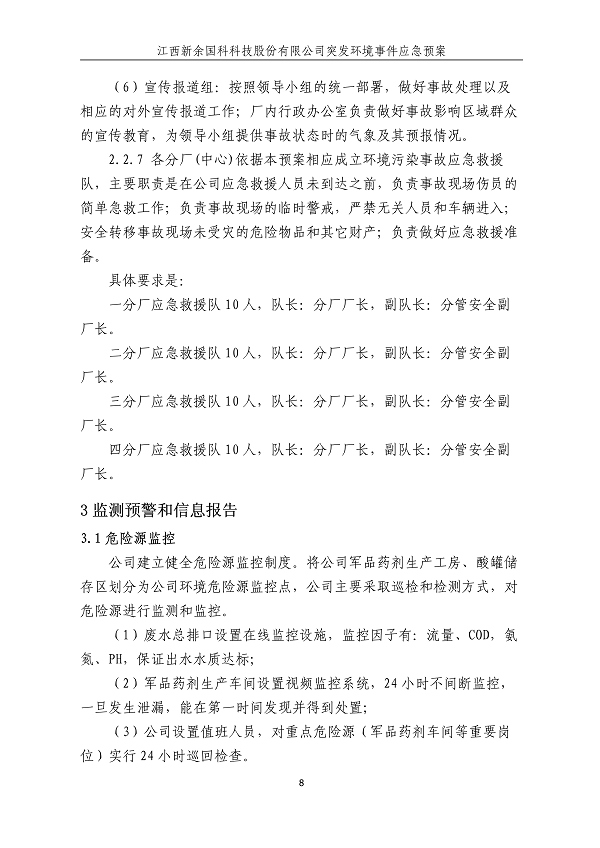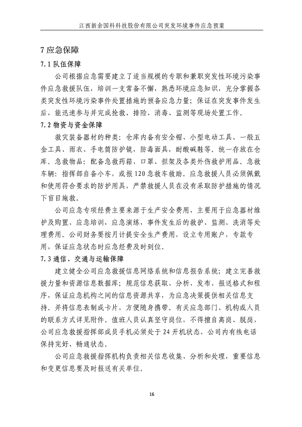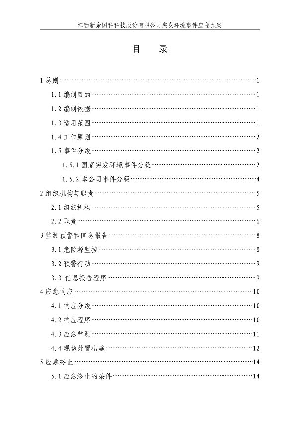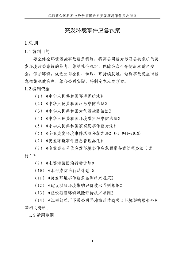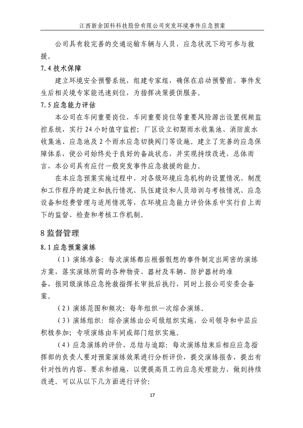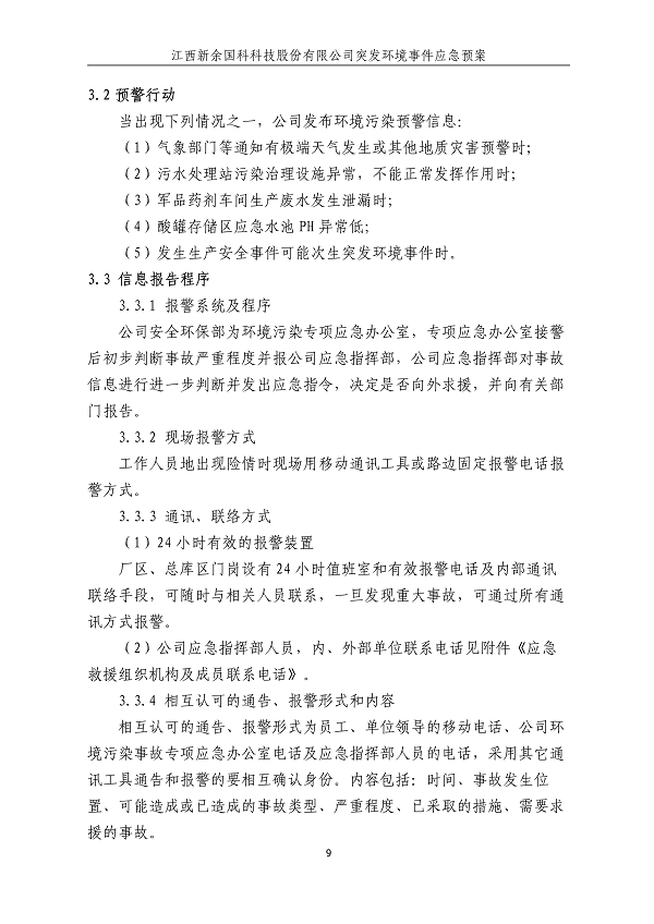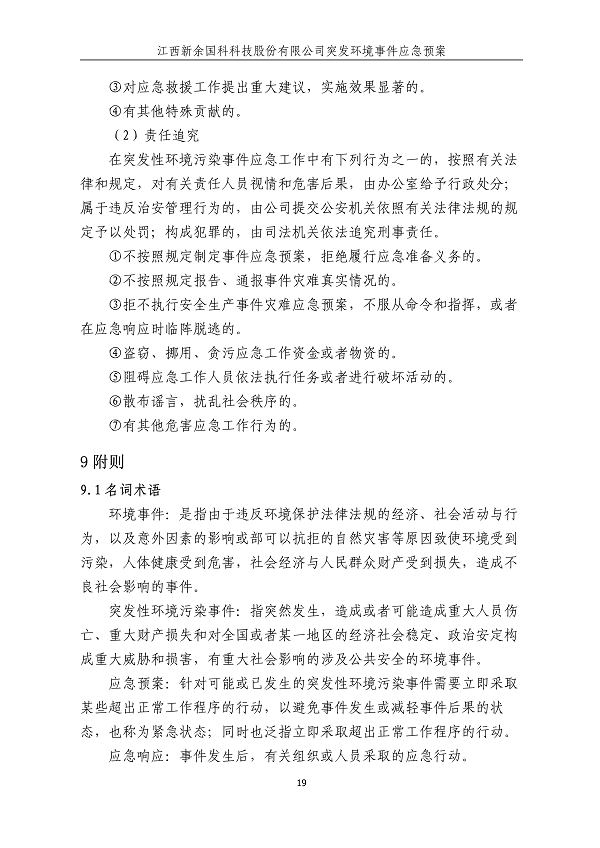 江西新余國科科技股份有限公司突發環境事件應急預案